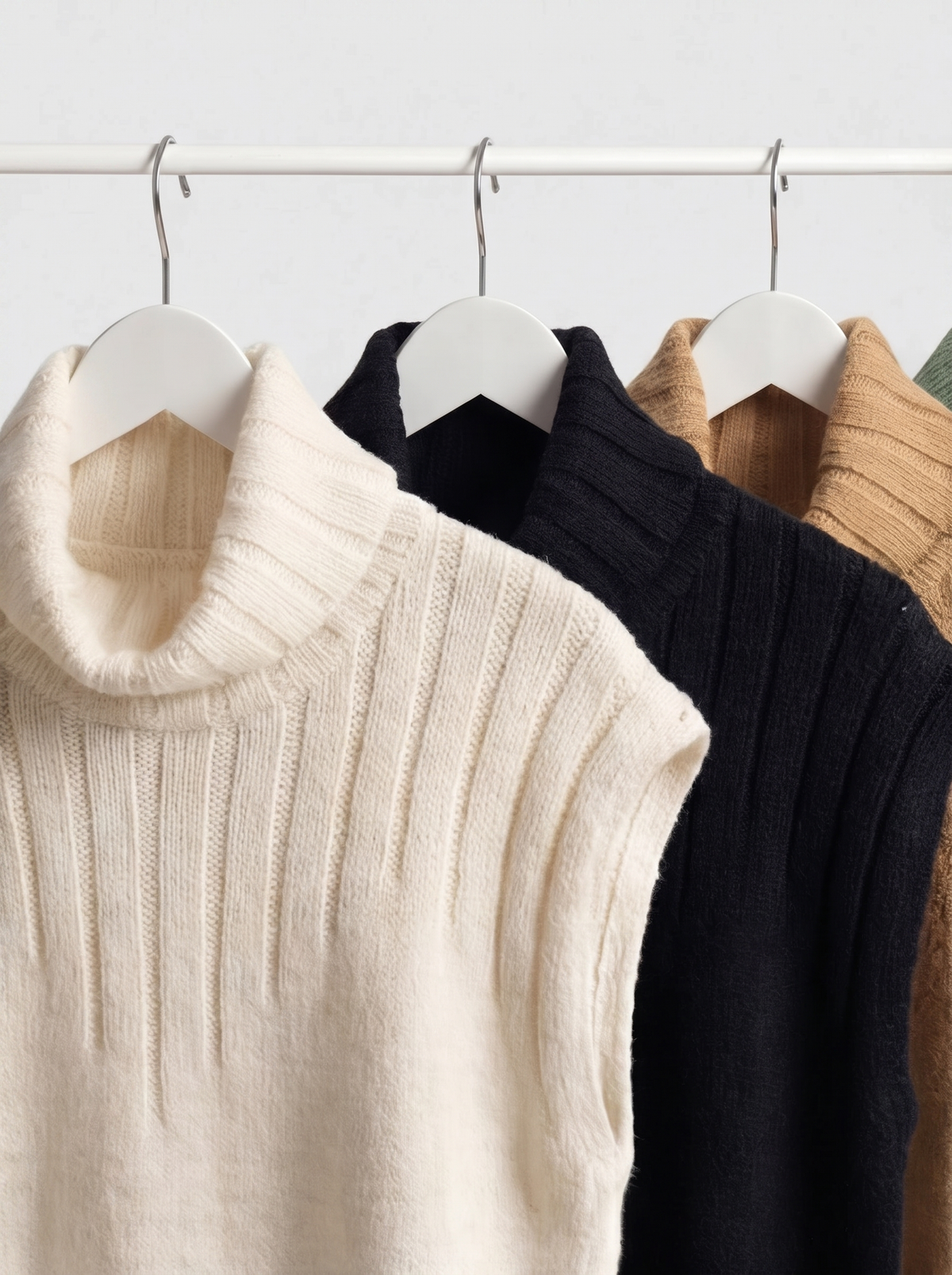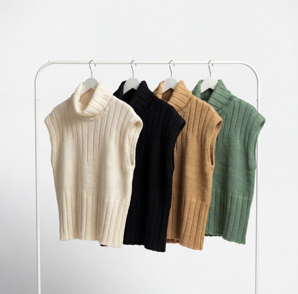 Chaleco con cuello alto confeccionado en hilo de algodon.
