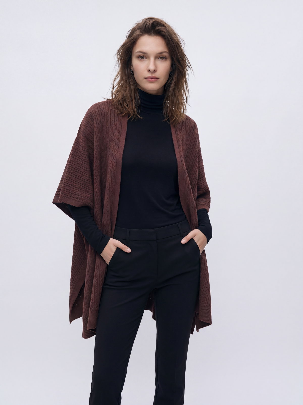 Poncho con detalle de trenzas confeccionado en hilo bremer.